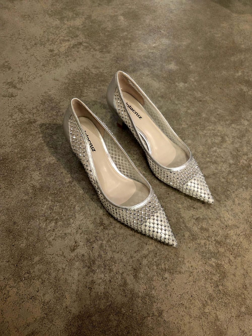 pumps kitten heel mesh met strass